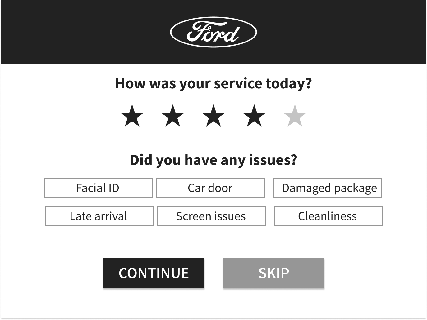 Screens that show up after the user’s service has been completed. This prompts users to browse popular products that are currently on display inside of the car. Users can choose to skip this if they are uninterested.