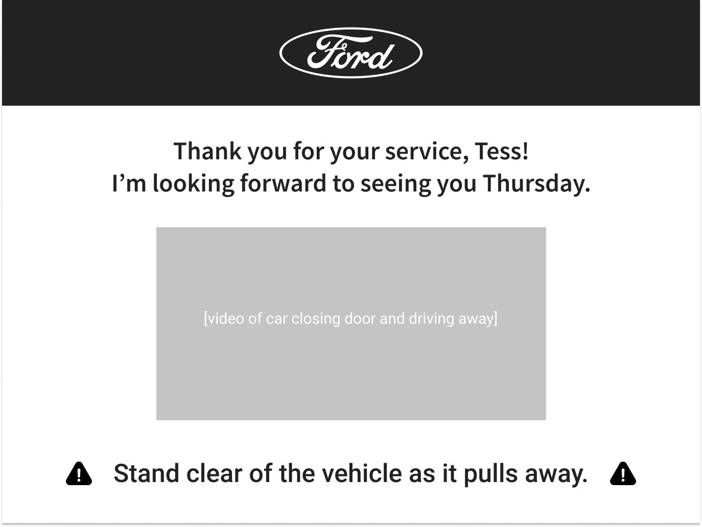 These screens show up specifically for the return service. The visualizations follow the car door opening warning screen for users to place the item they intend to return in the car.